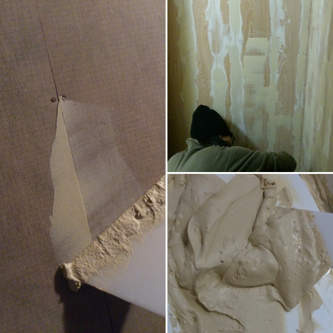 私が貼る壁は古い壁で、壁紙なのかコンパネなのか、よくわからない壁↓でした。
